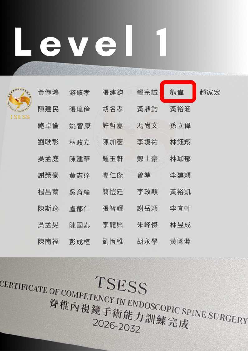 🏆脊椎內視鏡醫學會Level 1手術訓練合格